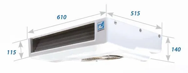 Данная модель холодильного агрегата представляет собой сплит-систему и состоит из двух отдельных частей — конденсатора и испарителя, соединенных между собой гибкими шлангами.