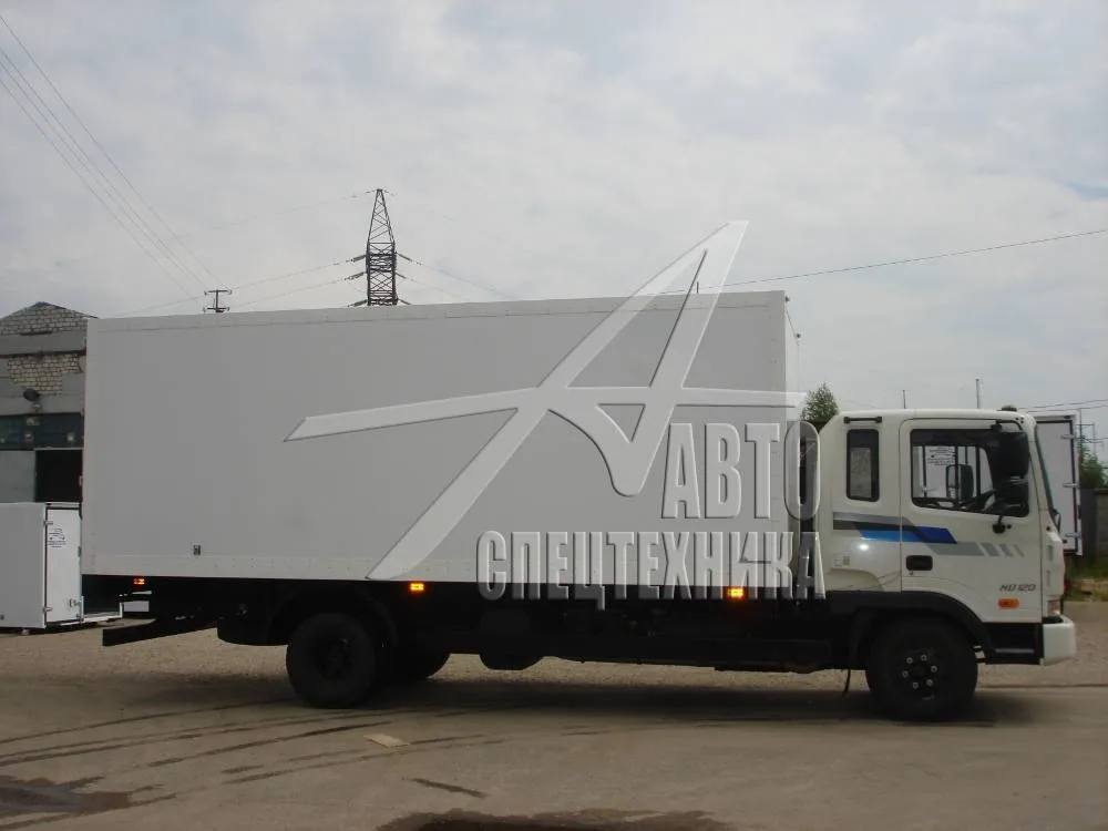 Тушевоз Hyundai HD-120 - среднетоннажный грузовой автомобиль с полной массой 12 000 кг и грузоподъёмностью фургона 6 200 – 6 500 кг. Перевозка туш в подвешенном состоянии в Калининграде. Грузоподъёмность тушевоза ниже составляет 2/3 от г/п фургона.
